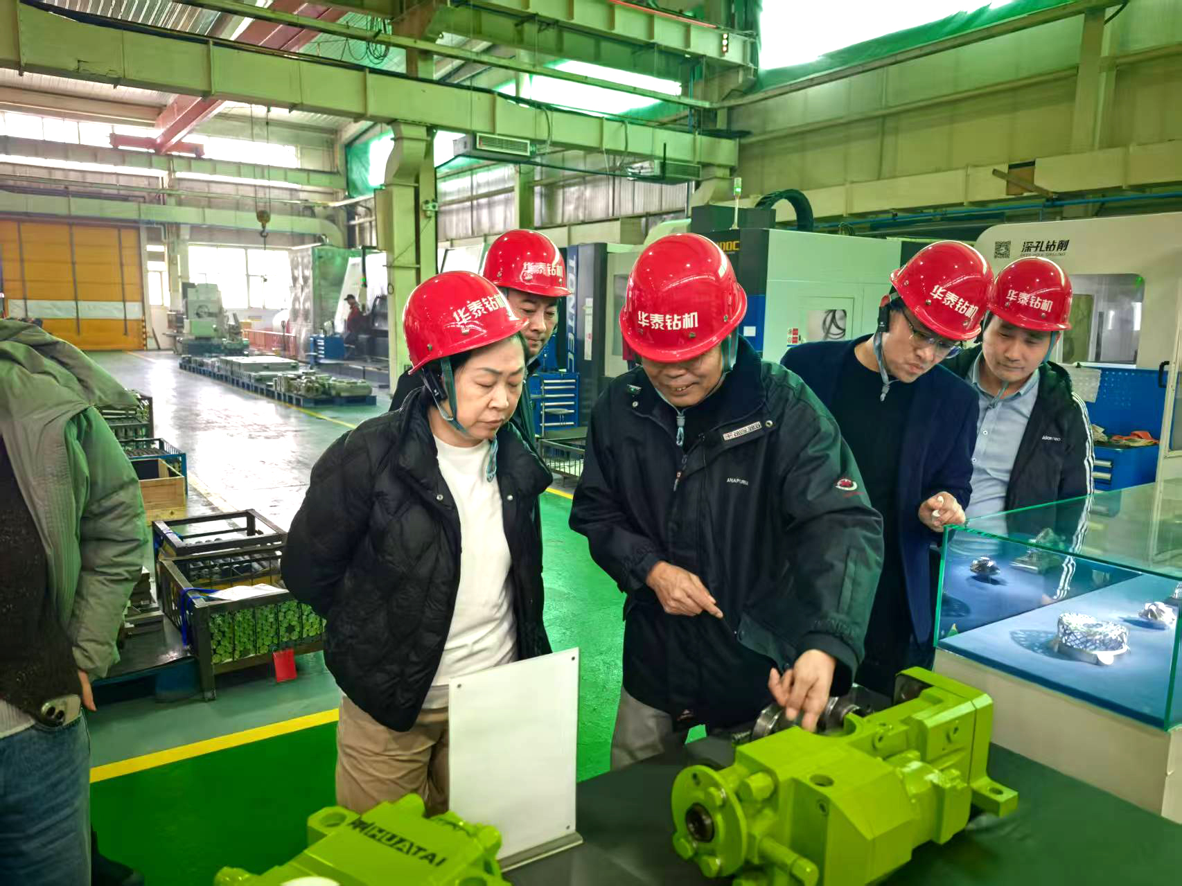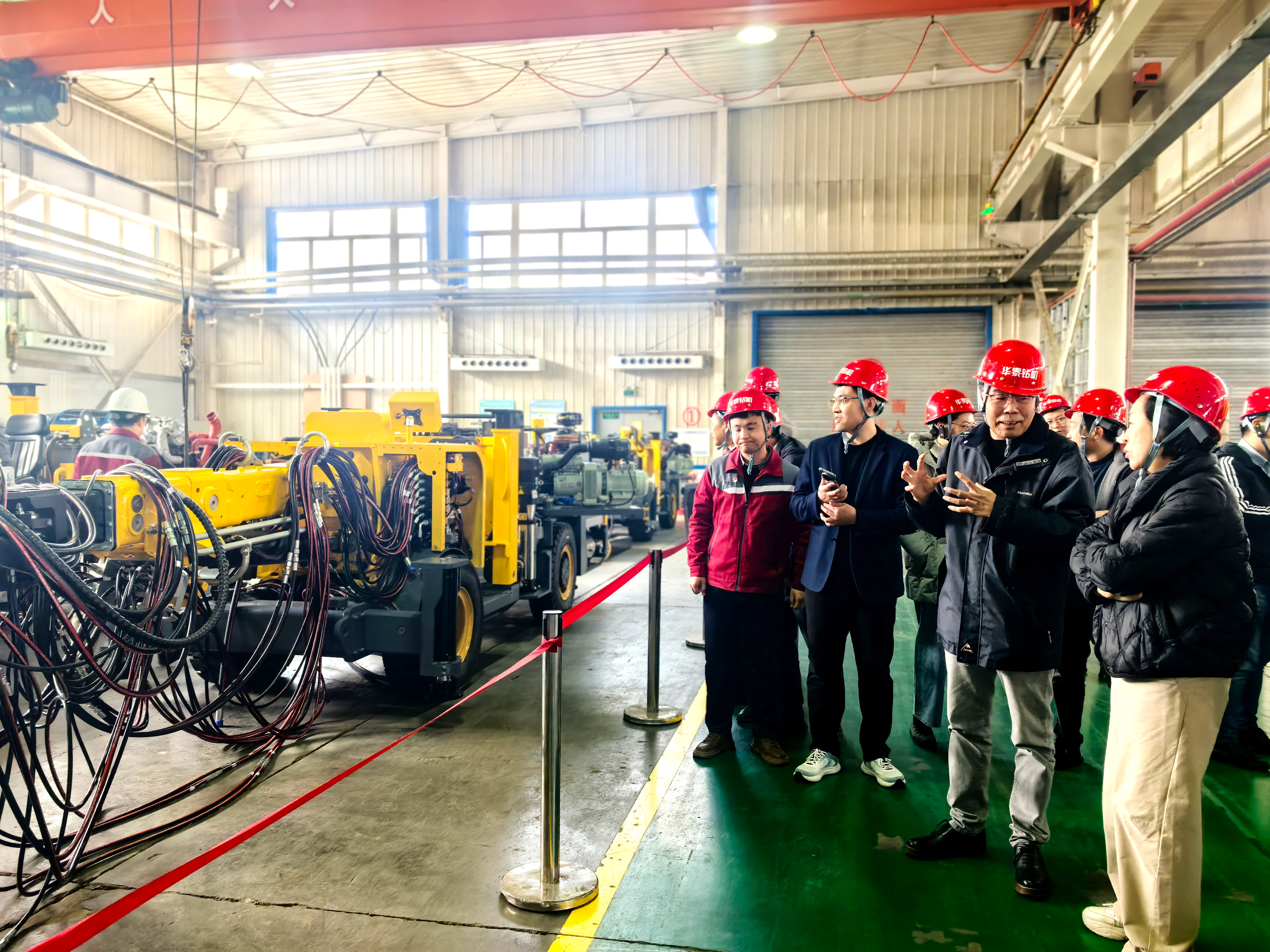 隨后,考察團深入華泰公司生產車間,沿鉆車全生命周期生產鏈條展開細致調研。在零部件精密加工區,考察團重點查看了核心部件的加工精度與質量檢測標準;在整機組裝調試車間,詳細了解了設備組裝流程、模塊化生產模式及出廠前的多維度性能測試體系。通過實地觀摩,考察團對企業在制造工藝標準化、質量管控精細化方面的扎實功底有了更直觀的認知,高度肯定其 “從零部件到整機” 的全流程品質把控能力。