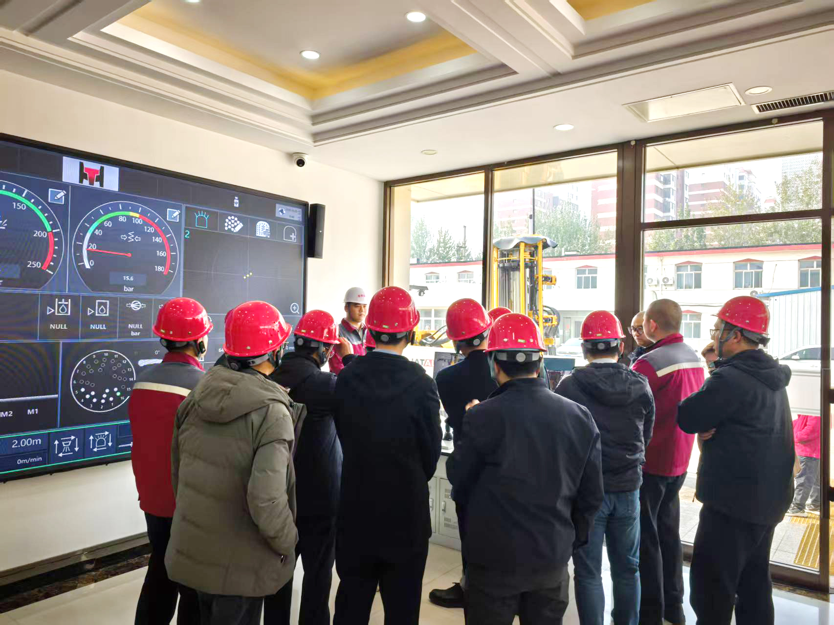 考察期間,華泰公司自主研發的遠程作業電腦版采礦臺車以及超低矮巷道錨桿支護臺車現場演示,成為考察團關注的核心焦點。演示過程中,設備全程實現全自動作業—— 從精準定位、智能鉆孔到實時數據反饋,整套流程高效運轉、穩定可靠,不僅直觀展現了產品在智能化控制、作業效率提升等方面的領先優勢,更以低故障率、高安全性的性能表現,贏得考察團成員的一致高度評價。